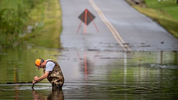 Στην περιοχή του Τζάκσον, μερικοί δρόμοι έχουν μετατραπεί σε ορμητικούς χείμαρρους, με εγκαταλελειμμένα αυτοκίνητα εδώ κι εκεί.