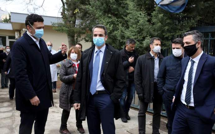 Τον πρωθυπουργό συνόδευαν ο υφυπουργός Δικαιοσύνης και βουλευτής Δυτικής Αττικής της Νέας Δημοκρατίας Γιώργος Κώτσηρας, ο υφυπουργός Ψηφιακής Διακυβέρνησης αρμόδιος για τις Τηλεπικοινωνίες και το Κτηματολόγιο Θεόδωρος Λιβάνιος, ο γενικός γραμματέας του ΥΠΑΑΤ αρμόδιος για Αγροτική Πολιτική και Διεθνείς Σχέσεις Κωνσταντίνος Μπαγινέτας, οι βουλευτές Δυτικής Αττικής της ΝΔ, Θανάσης Μπούρας και Ευάγγελος Λιάκος και ο Δήμαρχος Μεγαρέων Γρηγόρης Σταμούλης.