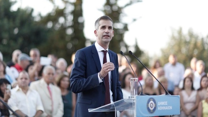 Ο νέος δήμαρχος υπογράμμισε ότι «η Αθήνα είναι μια πόλη ιδέα. Και δέος. Δέος απέναντι στη πρόκληση, στο έργο που μας περιμένει, στο μεγάλο στοίχημα να γίνει η Αθήνα αντάξια των Αθηναίων. Για ένα Δήμο Αθηναίων, συμπαραστάτη στις ανάγκες των Δημοτών αλλά και σύμμαχο στα όνειρα τους» και πρόσθεσε πως «για τα επόμενα τέσσερα χρόνια δεν θα είμαι ο άρχων αλλά ο υπηρέτης των Αθηναίων».