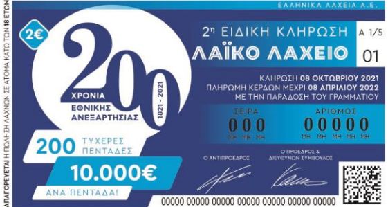 Πληροφορίες 2ης Ειδικής κλήρωσης Λαϊκού Λαχείου 2021