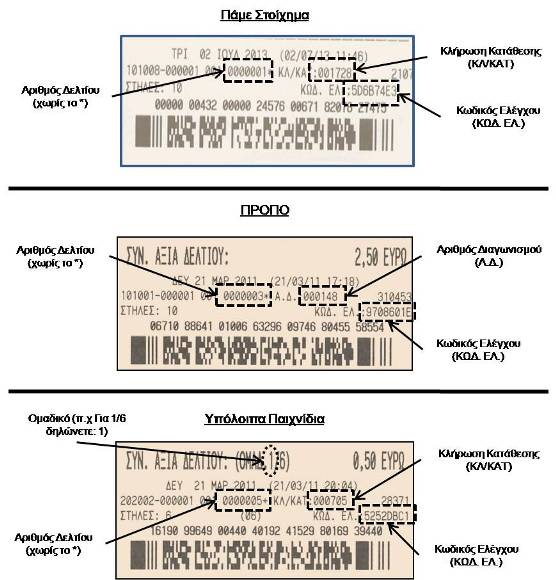Μπορείτε να κάνετε έλεγχο επιτυχιών και κερδών στα δελτία σας, χωρίς να χρειάζεται να εγκαταστήσετε τίποτε στον υπολογιστή σας. Για να δείτε αν κέρδισε το δελτίο σας (ΤΖΟΚΕΡ, ΠΡΟΤΟ, ΛΟΤΤΟ κ.α.) θα πρέπει να επιλέξετε το παρακάτω Link (σύνδεσμο) και να εισάγετε τα εξής στοιχεία που υπάρχουν στην απόδειξη του δελτίου: Αριθμός Δελτίου, ΚΛ/ΚΑΤ ή Α.Δ., Κωδικός Ελέγχου, Α/Α Ομαδικού, και το τέλος το Παιχνίδι που παίξατε, τα οποία μπορείτε να δείτε εδώ.