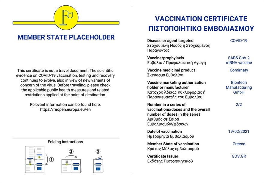 Το Ευρωπαϊκό Ψηφιακό Πιστοποιητικό COVID μπορεί να εκδοθεί: