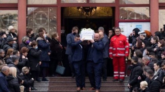 Η νεκρώσιμη ακολουθία εψάλη στις τέσσερις το απόγευμα στον Ιερό Ναό Αγίας Άννης στην Κατερίνη. Συντετριμμένοι, οι συγγενείς, μαζί με δεκάδες φίλους, πρώην συμμαθητές,γείτονες, γνωστοί και συμπολίτες, έσπευσαν να της πουν το τελευταίο “αντίο”.
