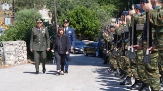 Δίπλα στους γονείς του Χρήστου Μουλά στέκεται με συγκινησιακή φόρτιση, η Πρόεδρος της Ελληνικής Δημοκρατίας Κατερίνα Σακελλαροπούλου.