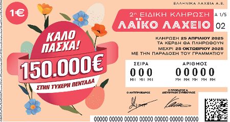 Χαρακτηριστικά της 2ης Ειδικής Κλήρωσης του Λαϊκού Λαχείου Πάσχα 25-4-2025: