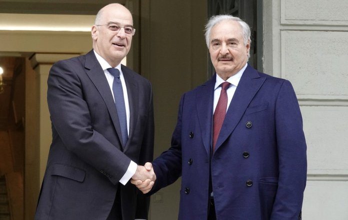 Ο στρατάρχης Χαφτάρ συμφώνησε με όλες τις παρατηρήσεις τής Ελλάδος, συμπεριλαμβανομένης της ανάγκης αναγνώρισης της ακυρότητας των παράνομων μνημονίων ανάμεσα στην Τουρκία και την κυβέρνηση Σάρατζ, επεσήμανε ο υπουργός Εξωτερικών Νίκος Δένδιας μετά τη συνάντησή του με τον επικεφαλής του Λιβυκού Εθνικού Στρατού (LNA), στρατάρχη Χαλίφα Χάφταρ (Khalifa Haftar), στο υπουργείο Εξωτερικών.
