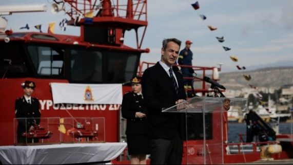 Στην τελετή ονοματοδοσίας και ένταξης δυο πυροσβεστικών πλοίων στο Πυροσβεστικό Σώμα παρευρέθηκε ο πρωθυπουργός Κυριάκος Μητσοτάκη.