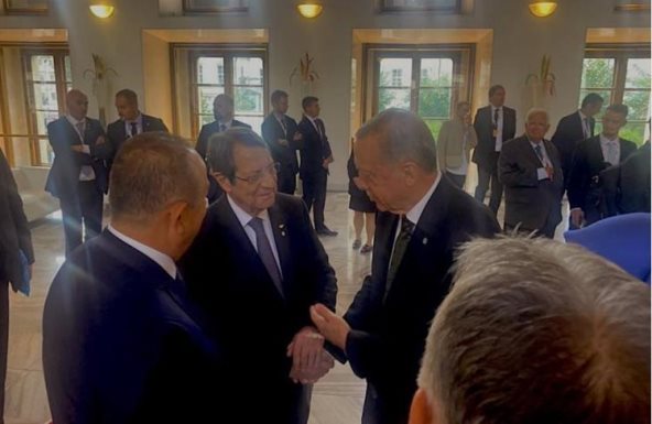 Σύντομη συνομιλία, που κράτησε μόλις μερικά λεπτά, είχε ο Νίκος Αναστασιάδης με τον Τούρκο Πρόεδρο Ταγίπ Ερντογάν στο περιθώριο των συναντήσεων στο πλαίσιο της συνόδου της Ευρωπαϊκής Πολιτικής Κοινότητας στην Πράγα της Τσεχίας.
