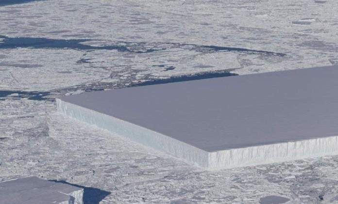 Ένα ασυνήθιστο μεγάλο παγόβουνο με σχήμα τέλειου ορθογώνιου – που θυμίζει τον εξωγήινο μονόλιθο στην ταινία «2001: Οδύσσεια του Διαστήματος» αλλά σε παγωμένη έκδοση – φωτογράφισε η Αμερικανική Διαστημική Υπηρεσία (NASA).