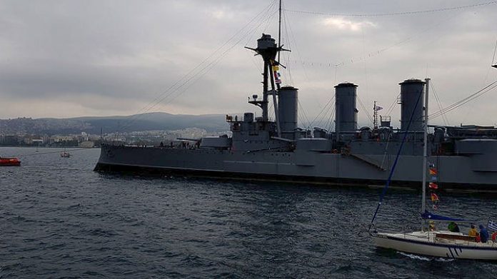 Το θωρηκτό συνόδευαν ακόμη και σκάφη ιδιωτών και ναυτικών ομίλων, ενώ οποιοδήποτε πλοίο βρισκόταν στο διάβα του, όπως και αυτά στο Αρχηγείο Στόλου, απέδιδε τιμές στο θωρηκτό – θρύλο του Πολεμικού Ναυτικού
