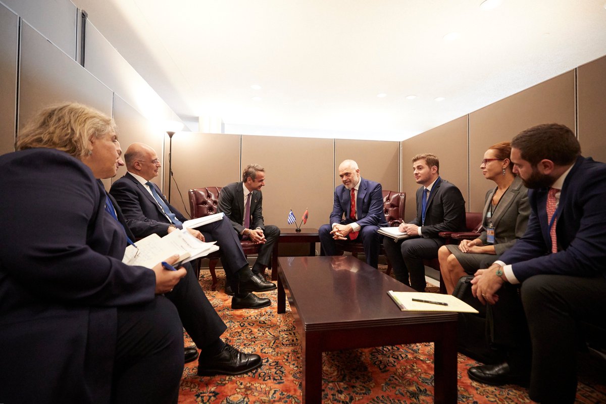 Οι διμερείς σχέσεις των δύο χωρών και η ενταξιακή πορεία της Αλβανίας στην Ευρωπαϊκή Ένωση, ενόψει του Ευρωπαϊκού Συμβουλίου του Οκτωβρίου, συζητήθηκαν στη συνάντηση του Έλληνα πρωθυπουργού, Κυριάκου Μητσοτάκη με τον Αλβανό ομόλογό του Έντι Ράμα στο περιθώριο της Συνόδου του ΟΗΕ στη Νέα Υόρκη.