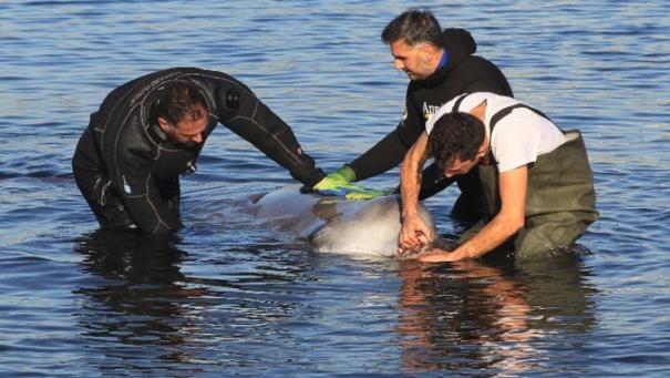 Κρίσιμη η κατάσταση της υγείας της φάλαινας που εξόκειλε στην παραλία Αλίμου