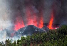 Το ηφαίστειο Κούμπρε Βιέχα, στο αρχιπέλαγος των Καναρίων Νήσων, στη νότια πλευρά του νησιού Λα Πάλμα, εξερράγη σήμερα, εκτοξεύοντας λάβα, πυκνό καπνό και στάχτες.