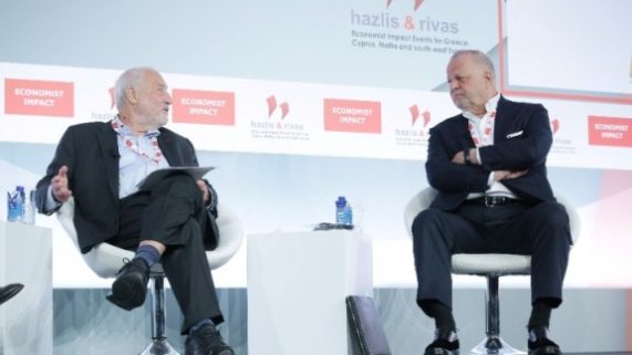 Πέντε ανησυχίες για τα επόμενα βήματα της ελληνικής οικονομίας εξέφρασε σήμερα, από το βήμα του συνεδρίου του Economist στην Αθήνα, ο Νομπελίστας καθηγητής Τζόζεφ Στίγκλιτς (Joseph Stiglitz), ενώ ανοίγοντας το «κάδρο» των οικονομικών προοπτικών σε παγκόσμιο επίπεδο εκτίμησε ότι η μεγάλη αβεβαιότητα προκύπτει από την πορεία που θα ακολουθήσουν οι τιμές της ενέργειας, αν υπάρξει πλήρης ανάφλεξη στη Μέση Ανατολή: για τις ανεξάρτητες ενεργειακά ΗΠΑ υπάρχουν περισσότερα περιθώρια υπέρβασης μιας τέτοιας δυσκολίας, αλλά η κατάσταση είναι διαφορετική για την Ευρώπη, επισήμανε.