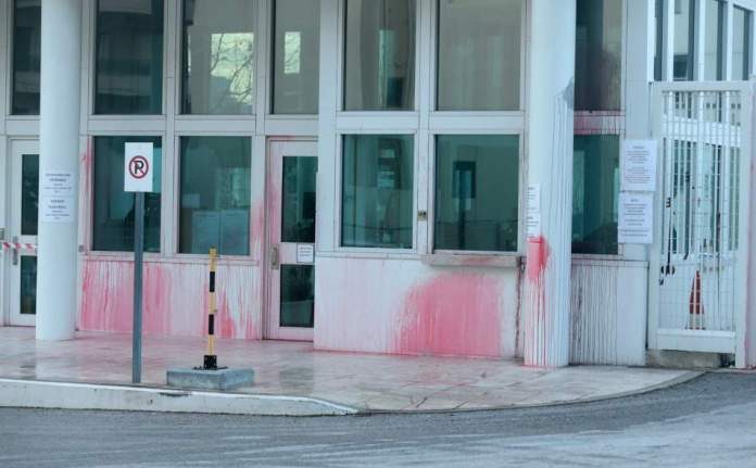Οι δράστες, περίπου 10 άτομα με δίκυκλα, πέταξαν σχεδόν ταυτόχρονα με τις μπογιές, καπνογόνα για να μην τους καταγράψουν οι κάμερες, αλλά και για να δημιουργήσουν σύγχυση και να μπορέσουν να διαφύγουν.