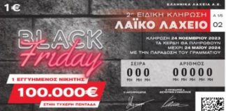 Λαϊκό Λαχείο Βlack Friday 28-11-2025 : Αποτελέσματα 5ης Ειδικής Κλήρωσης