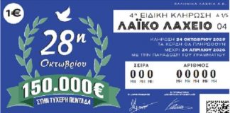 ΛΑΙΚΟ ΛΑΧΕΙΟ 24-10-2025: Αποτελέσματα 4ης Ειδικής Κλήρωσης (28ης Οκτωβρίου)