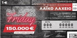 Λαϊκό Λαχείο Βlack Friday 28-11-2025 : Αποτελέσματα 5ης Ειδικής Κλήρωσης